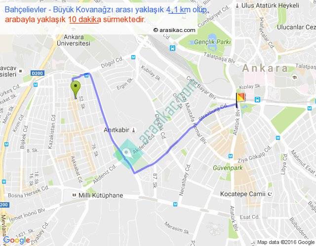 Eğer Bahçelievler Büyük Kovanağzı arası ne kadar yakar (benzin/mazot) diyorsanız, kilometrede 3 ₺ yakan bir aracınız var ise 12, km'de 4 ₺ yakan bir aracınız var ise 16, km'de 5 ₺ yakan bir aracınız var ise 20 ile bu yolculuğu tamamlayabilirsiniz.