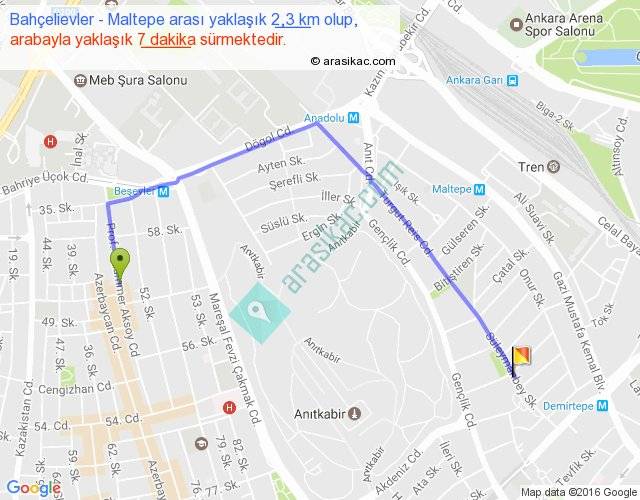 Bahçelievler - Maltepe arası yaklaşık olarak 90 km/h ile yukarıda belirtilen sürede olup, iki yerin kuş uçuşu uzaklığı (mesafesi) 1'dir. Yolculuk otobüsle 9 dakika sürmektedir.