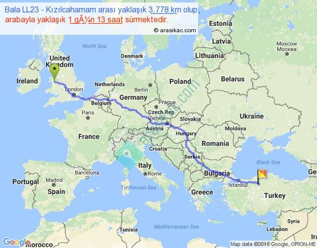 Bala LL23 - Kızılcahamam arası yaklaşık olarak 90 km/h ile yukarıda belirtilen sürede olup, iki yerin kuş uçuşu uzaklığı (mesafesi) 3030'dir. Eğer belirtilen yerler arasında uçak seferi var ise bu süre uçakla 4 saat 39 dakika'ya kadar düşebilir. Yolculuk otobüsle 2 gün 0 saat sürmektedir.