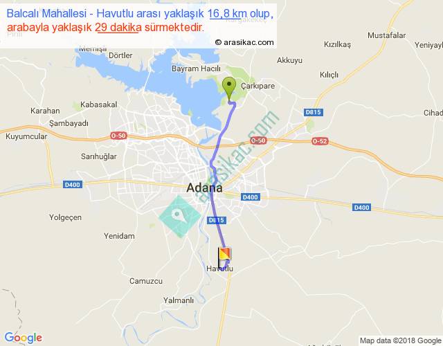 Balcalı Mahallesi - Havutlu arası yaklaşık olarak 90 km/h ile yukarıda belirtilen sürede olup, iki yerin kuş uçuşu uzaklığı (mesafesi) 15'dir. Yolculuk otobüsle 37 dakika sürmektedir.