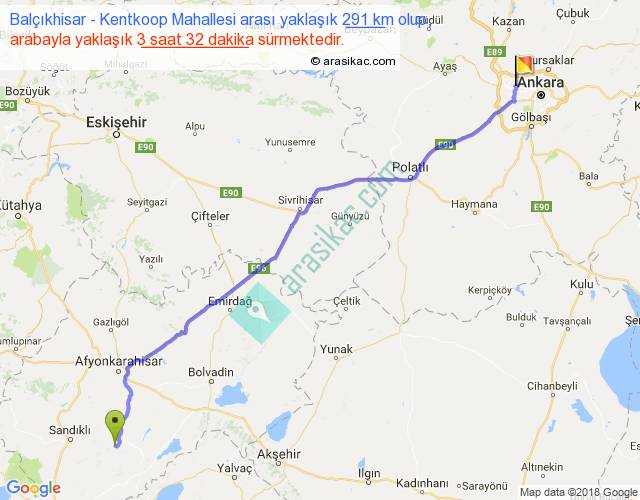 Balçıkhisar - Kentkoop Mahallesi arası yaklaşık olarak 90 km/h ile yukarıda belirtilen sürede olup, iki yerin kuş uçuşu uzaklığı (mesafesi) 254'dir. Eğer belirtilen yerler arasında uçak seferi var ise bu süre uçakla 23 dakika'ya kadar düşebilir. Yolculuk otobüsle 4 saat 35 dakika sürmektedir.