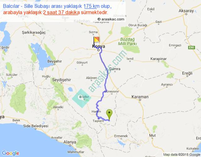Balcılar - Sille Subaşı arası yaklaşık olarak 90 km/h ile yukarıda belirtilen sürede olup, iki yerin kuş uçuşu uzaklığı (mesafesi) 117'dir. Yolculuk otobüsle 3 saat 24 dakika sürmektedir.