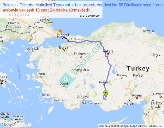 Balcılar - Türkoba Mahallesi Tepekent sİtesi tepecik caddesi No:55 Büyükçekmece arası yaklaşık olarak 90 km/h ile yukarıda belirtilen sürede olup, iki yerin kuş uçuşu uzaklığı (mesafesi) 583'dir. Eğer belirtilen yerler arasında uçak seferi var ise bu süre uçakla 53 dakika'ya kadar düşebilir. Yolculuk otobüsle 13 saat 31 dakika sürmektedir.