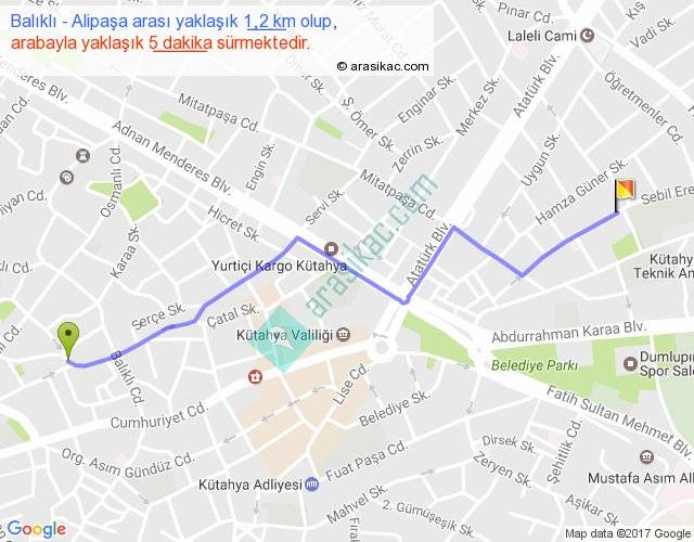 Balıklı - Alipaşa arası yaklaşık olarak 90 km/h ile yukarıda belirtilen sürede olup, iki yerin kuş uçuşu uzaklığı (mesafesi) 1'dir. Yolculuk otobüsle 6 dakika sürmektedir.