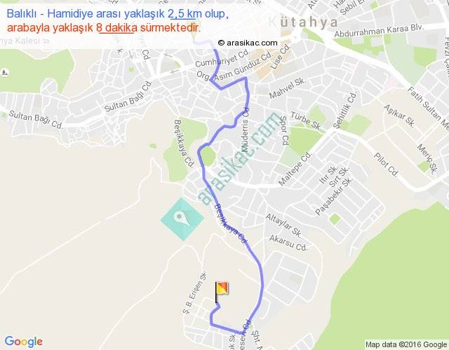 Balıklı - Hamidiye arası yaklaşık olarak 90 km/h ile yukarıda belirtilen sürede olup, iki yerin kuş uçuşu uzaklığı (mesafesi) 1'dir. Yolculuk otobüsle 10 dakika sürmektedir.