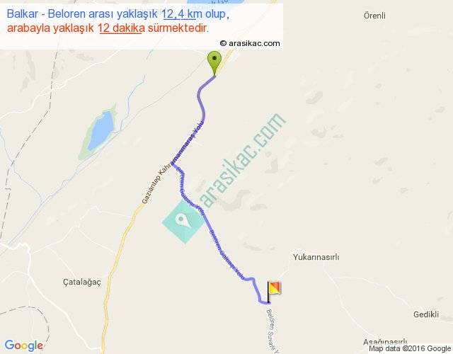 Balkar - Beloren arası yaklaşık olarak 90 km/h ile yukarıda belirtilen sürede olup, iki yerin kuş uçuşu uzaklığı (mesafesi) 10'dir. Yolculuk otobüsle 15 dakika sürmektedir.