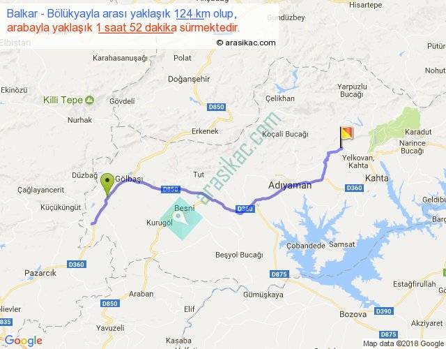 Balkar - Bölükyayla arası yaklaşık olarak 90 km/h ile yukarıda belirtilen sürede olup, iki yerin kuş uçuşu uzaklığı (mesafesi) 82'dir. Yolculuk otobüsle 2 saat 25 dakika sürmektedir.