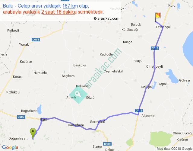 Balkı - Celep arası yaklaşık olarak 90 km/h ile yukarıda belirtilen sürede olup, iki yerin kuş uçuşu uzaklığı (mesafesi) 133'dir. Yolculuk otobüsle 2 saat 59 dakika sürmektedir.