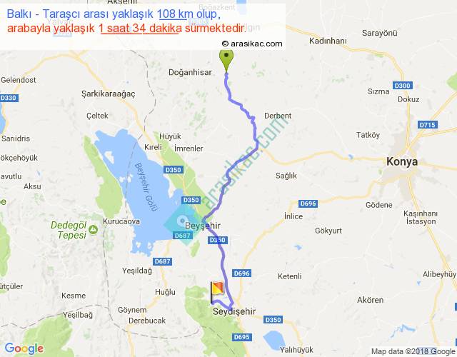 Balkı - Taraşcı arası yaklaşık olarak 90 km/h ile yukarıda belirtilen sürede olup, iki yerin kuş uçuşu uzaklığı (mesafesi) 77'dir. Yolculuk otobüsle 2 saat 2 dakika sürmektedir.