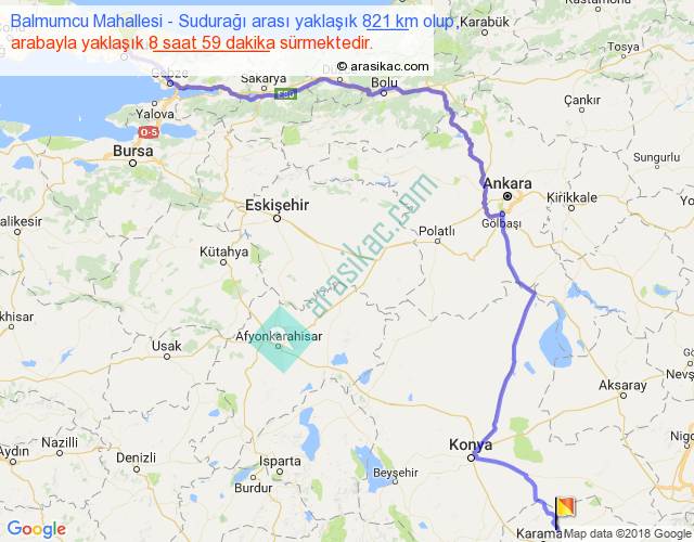 Balmumcu Mahallesi - Sudurağı arası yaklaşık olarak 90 km/h ile yukarıda belirtilen sürede olup, iki yerin kuş uçuşu uzaklığı (mesafesi) 559'dir. Eğer belirtilen yerler arasında uçak seferi var ise bu süre uçakla 51 dakika'ya kadar düşebilir. Yolculuk otobüsle 11 saat 40 dakika sürmektedir.