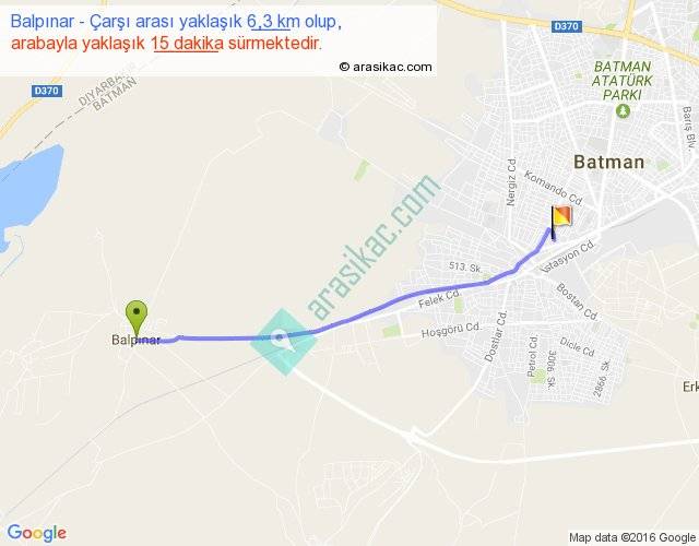 Balpınar - Çarşı arası yaklaşık olarak 90 km/h ile yukarıda belirtilen sürede olup, iki yerin kuş uçuşu uzaklığı (mesafesi) 6'dir. Yolculuk otobüsle 19 dakika sürmektedir.