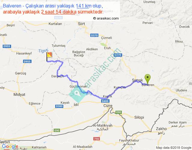 Balveren - Çalışkan arası yaklaşık olarak 90 km/h ile yukarıda belirtilen sürede olup, iki yerin kuş uçuşu uzaklığı (mesafesi) 83'dir. Yolculuk otobüsle 3 saat 46 dakika sürmektedir.