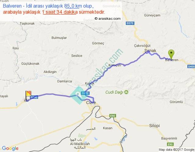 Balveren - İdil arası yaklaşık olarak 90 km/h ile yukarıda belirtilen sürede olup, iki yerin kuş uçuşu uzaklığı (mesafesi) 60'dir. Yolculuk otobüsle 2 saat 2 dakika sürmektedir.