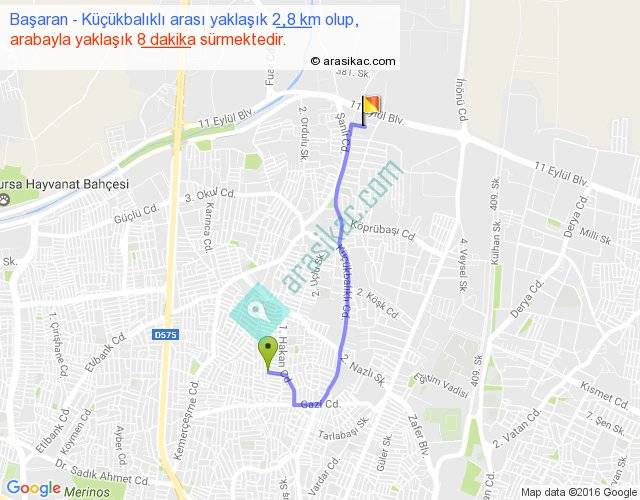 Başaran - Küçükbalıklı arası yaklaşık olarak 90 km/h ile yukarıda belirtilen sürede olup, iki yerin kuş uçuşu uzaklığı (mesafesi) 2'dir. Yolculuk otobüsle 10 dakika sürmektedir.