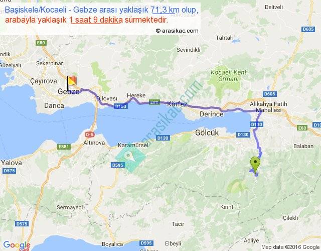 Eğer Başiskele Kocaeli Gebze arası ne kadar yakar (benzin/mazot) diyorsanız, kilometrede 3 ₺ yakan bir aracınız var ise 213, km'de 4 ₺ yakan bir aracınız var ise 284, km'de 5 ₺ yakan bir aracınız var ise 355 ile bu yolculuğu tamamlayabilirsiniz.