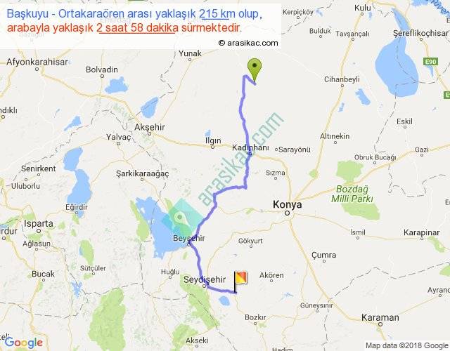 Başkuyu - Ortakaraören arası yaklaşık olarak 90 km/h ile yukarıda belirtilen sürede olup, iki yerin kuş uçuşu uzaklığı (mesafesi) 143'dir. Yolculuk otobüsle 3 saat 51 dakika sürmektedir.
