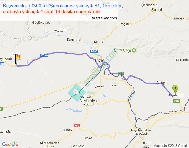 Başverimli - 73300 İdil Şırnak arası yaklaşık olarak 90 km/h ile yukarıda belirtilen sürede olup, iki yerin kuş uçuşu uzaklığı (mesafesi) 66'dir. Yolculuk otobüsle 1 saat 38 dakika sürmektedir.