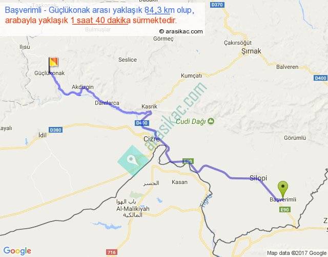 Başverimli - Güçlükonak arası yaklaşık olarak 90 km/h ile yukarıda belirtilen sürede olup, iki yerin kuş uçuşu uzaklığı (mesafesi) 62'dir. Yolculuk otobüsle 2 saat 10 dakika sürmektedir.