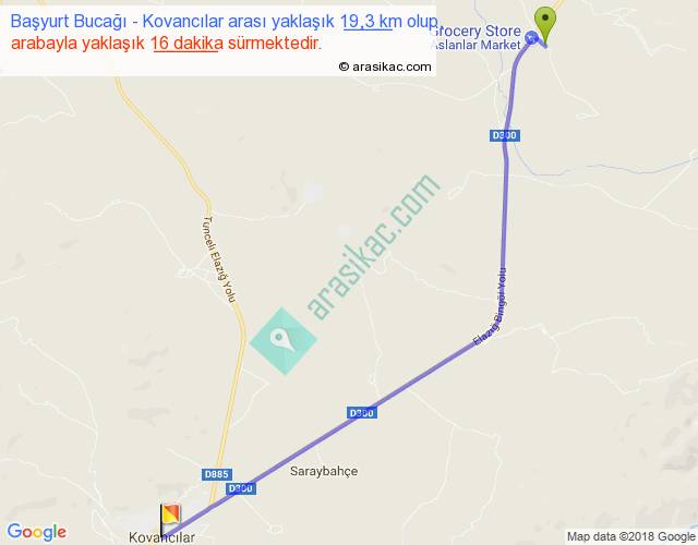 Başyurt Bucağı - Kovancılar arası yaklaşık olarak 90 km/h ile yukarıda belirtilen sürede olup, iki yerin kuş uçuşu uzaklığı (mesafesi) 17'dir. Yolculuk otobüsle 20 dakika sürmektedir.