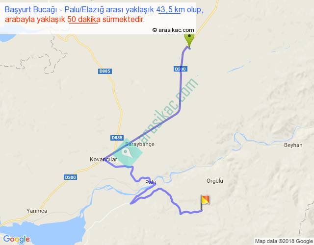 Başyurt Bucağı - Palu Elazığ arası yaklaşık olarak 90 km/h ile yukarıda belirtilen sürede olup, iki yerin kuş uçuşu uzaklığı (mesafesi) 20'dir. Yolculuk otobüsle 1 saat 5 dakika sürmektedir.