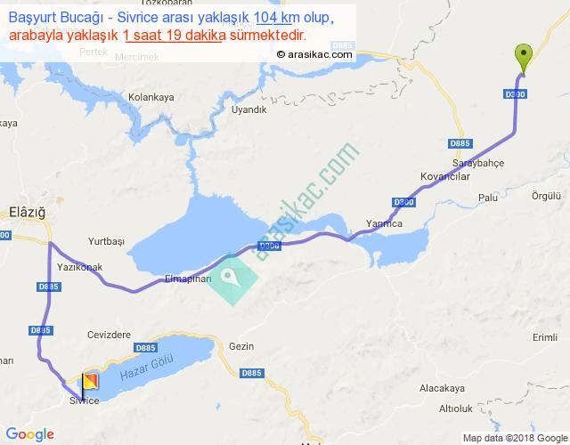 Başyurt Bucağı - Sivrice arası yaklaşık olarak 90 km/h ile yukarıda belirtilen sürede olup, iki yerin kuş uçuşu uzaklığı (mesafesi) 73'dir. Yolculuk otobüsle 1 saat 42 dakika sürmektedir.