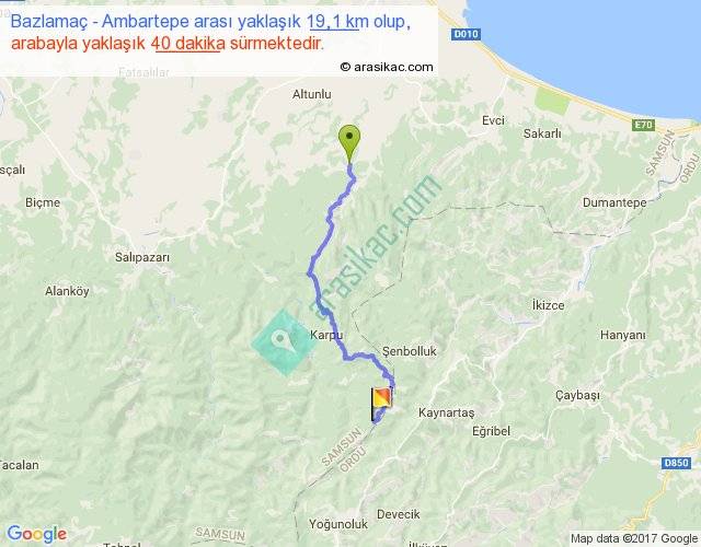 Bazlamaç - Ambartepe arası yaklaşık olarak 90 km/h ile yukarıda belirtilen sürede olup, iki yerin kuş uçuşu uzaklığı (mesafesi) 14'dir. Yolculuk otobüsle 52 dakika sürmektedir.