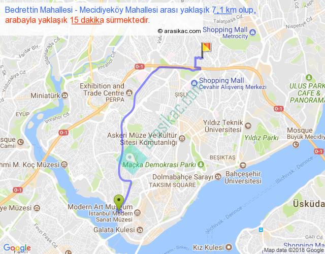 Eğer Bedrettin Mahallesi Mecidiyeköy Mahallesi arası ne kadar yakar (benzin/mazot) diyorsanız, kilometrede 3 ₺ yakan bir aracınız var ise 21, km'de 4 ₺ yakan bir aracınız var ise 28, km'de 5 ₺ yakan bir aracınız var ise 35 ile bu yolculuğu tamamlayabilirsiniz.