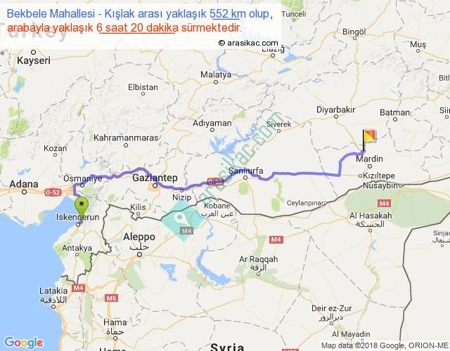 Bekbele Mahallesi - Kışlak arası yaklaşık olarak 90 km/h ile yukarıda belirtilen sürede olup, iki yerin kuş uçuşu uzaklığı (mesafesi) 402'dir. Eğer belirtilen yerler arasında uçak seferi var ise bu süre uçakla 37 dakika'ya kadar düşebilir. Yolculuk otobüsle 8 saat 14 dakika sürmektedir.
