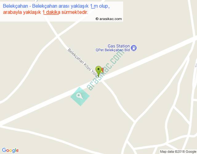 Belekçahan - Belekçahan arası yaklaşık olarak 90 km/h ile yukarıda belirtilen sürede olup, iki yerin kuş uçuşu uzaklığı (mesafesi) 0'dir. Yolculuk otobüsle 1 dakika sürmektedir.
