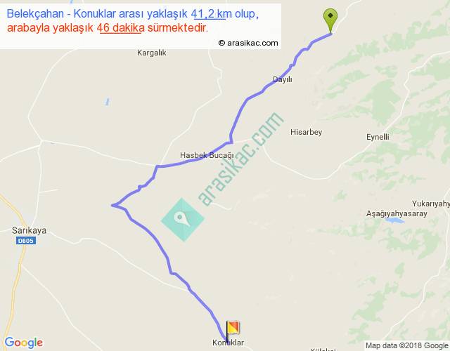 Belekçahan - Konuklar arası yaklaşık olarak 90 km/h ile yukarıda belirtilen sürede olup, iki yerin kuş uçuşu uzaklığı (mesafesi) 27'dir. Yolculuk otobüsle 59 dakika sürmektedir.