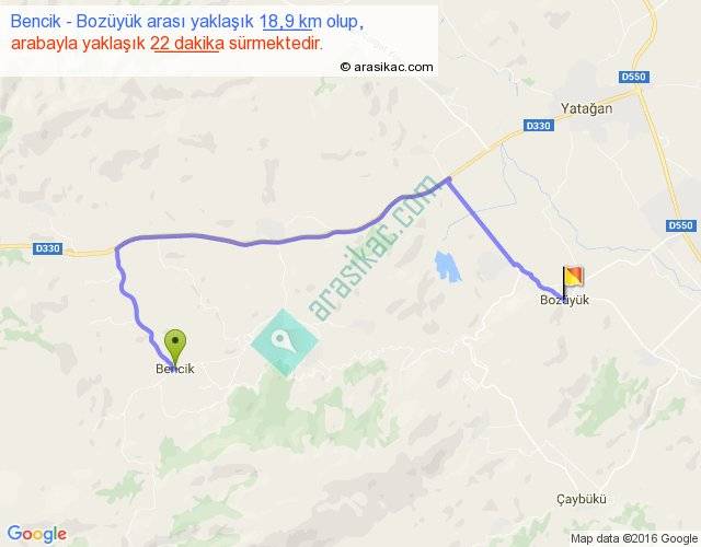 Bencik - Bozüyük arası yaklaşık olarak 90 km/h ile yukarıda belirtilen sürede olup, iki yerin kuş uçuşu uzaklığı (mesafesi) 11'dir. Yolculuk otobüsle 28 dakika sürmektedir.
