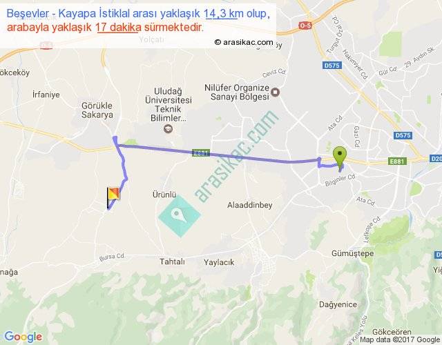 Beşevler - Kayapa İstiklal arası yaklaşık olarak 90 km/h ile yukarıda belirtilen sürede olup, iki yerin kuş uçuşu uzaklığı (mesafesi) 10'dir. Yolculuk otobüsle 22 dakika sürmektedir.