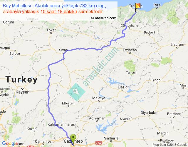 Bey Mahallesi - Akoluk arası yaklaşık olarak 90 km/h ile yukarıda belirtilen sürede olup, iki yerin kuş uçuşu uzaklığı (mesafesi) 471'dir. Eğer belirtilen yerler arasında uçak seferi var ise bu süre uçakla 43 dakika'ya kadar düşebilir. Yolculuk otobüsle 13 saat 23 dakika sürmektedir.