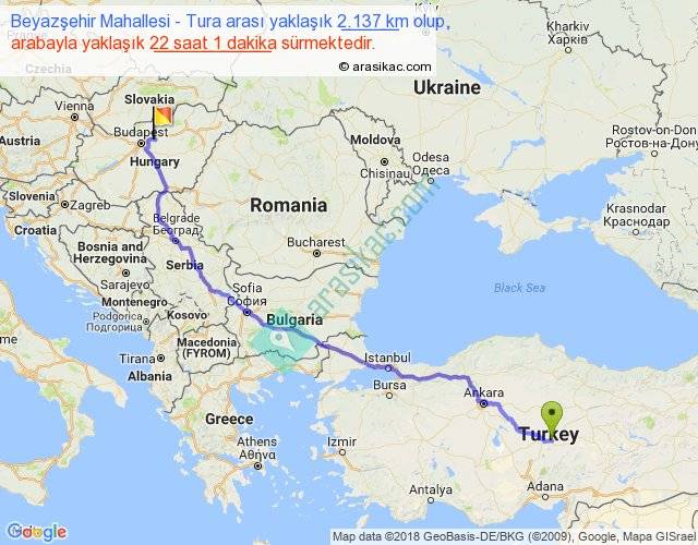 Beyazşehir Mahallesi - Tura arası yaklaşık olarak 90 km/h ile yukarıda belirtilen sürede olup, iki yerin kuş uçuşu uzaklığı (mesafesi) 1611'dir. Eğer belirtilen yerler arasında uçak seferi var ise bu süre uçakla 2 saat 28 dakika'ya kadar düşebilir. Yolculuk otobüsle 1 gün 4 saat sürmektedir.