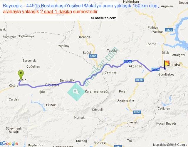 Beyceğiz - 44915 Bostanbaşı Yeşilyurt Malatya arası yaklaşık olarak 90 km/h ile yukarıda belirtilen sürede olup, iki yerin kuş uçuşu uzaklığı (mesafesi) 117'dir. Yolculuk otobüsle 2 saat 37 dakika sürmektedir.
