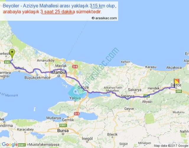 Eğer Beyciler Aziziye Mahallesi arası ne kadar yakar (benzin/mazot) diyorsanız, kilometrede 3 ₺ yakan bir aracınız var ise 945, km'de 4 ₺ yakan bir aracınız var ise 1260, km'de 5 ₺ yakan bir aracınız var ise 1575 ile bu yolculuğu tamamlayabilirsiniz.