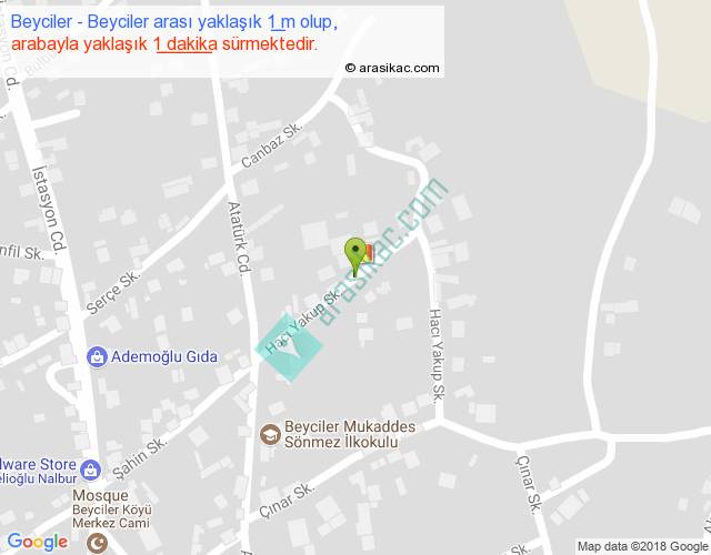 Beyciler - Beyciler arası yaklaşık olarak 90 km/h ile yukarıda belirtilen sürede olup, iki yerin kuş uçuşu uzaklığı (mesafesi) 0'dir. Yolculuk otobüsle 1 dakika sürmektedir.