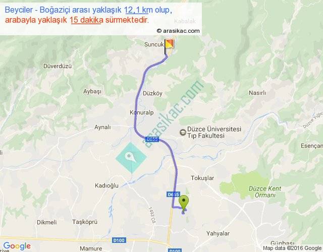 Beyciler - Boğaziçi arası yaklaşık olarak 90 km/h ile yukarıda belirtilen sürede olup, iki yerin kuş uçuşu uzaklığı (mesafesi) 9'dir. Yolculuk otobüsle 19 dakika sürmektedir.
