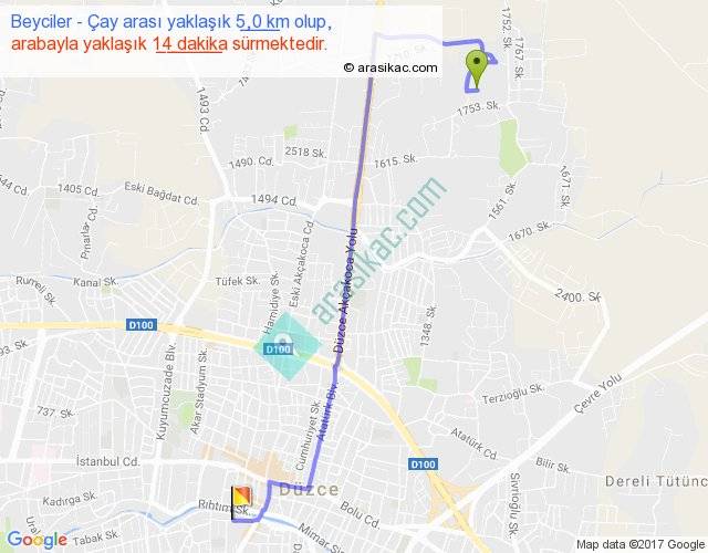 Beyciler - Çay arası yaklaşık olarak 90 km/h ile yukarıda belirtilen sürede olup, iki yerin kuş uçuşu uzaklığı (mesafesi) 3'dir. Yolculuk otobüsle 18 dakika sürmektedir.