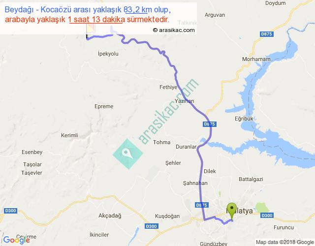 Beydağı - Kocaözü arası yaklaşık olarak 90 km/h ile yukarıda belirtilen sürede olup, iki yerin kuş uçuşu uzaklığı (mesafesi) 56'dir. Yolculuk otobüsle 1 saat 34 dakika sürmektedir.