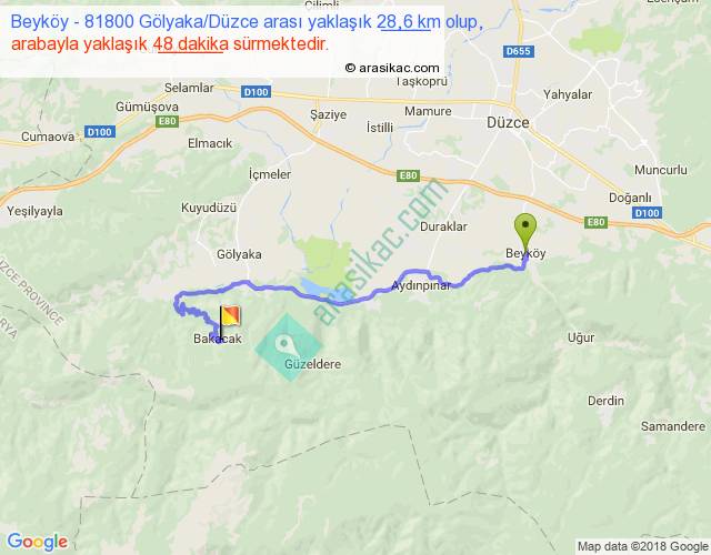 Beyköy - 81800 Gölyaka Düzce arası yaklaşık olarak 90 km/h ile yukarıda belirtilen sürede olup, iki yerin kuş uçuşu uzaklığı (mesafesi) 16'dir. Yolculuk otobüsle 1 saat 2 dakika sürmektedir.