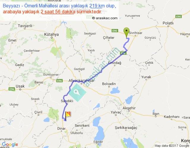 Beyyazı - Ömerli Mahallesi arası yaklaşık olarak 90 km/h ile yukarıda belirtilen sürede olup, iki yerin kuş uçuşu uzaklığı (mesafesi) 163'dir. Yolculuk otobüsle 3 saat 48 dakika sürmektedir.
