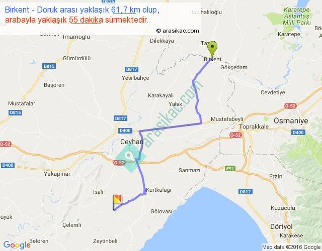 Birkent - Doruk arası yaklaşık olarak 90 km/h ile yukarıda belirtilen sürede olup, iki yerin kuş uçuşu uzaklığı (mesafesi) 43'dir. Yolculuk otobüsle 1 saat 11 dakika sürmektedir.