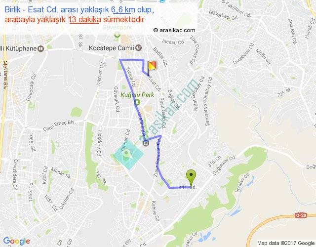 Eğer Birlik Esat Cd. arası ne kadar yakar (benzin/mazot) diyorsanız, kilometrede 3 ₺ yakan bir aracınız var ise 18, km'de 4 ₺ yakan bir aracınız var ise 24, km'de 5 ₺ yakan bir aracınız var ise 30 ile bu yolculuğu tamamlayabilirsiniz.