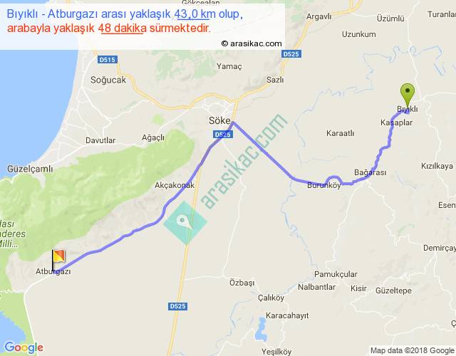 Bıyıklı - Atburgazı arası yaklaşık olarak 90 km/h ile yukarıda belirtilen sürede olup, iki yerin kuş uçuşu uzaklığı (mesafesi) 33'dir. Yolculuk otobüsle 1 saat 2 dakika sürmektedir.