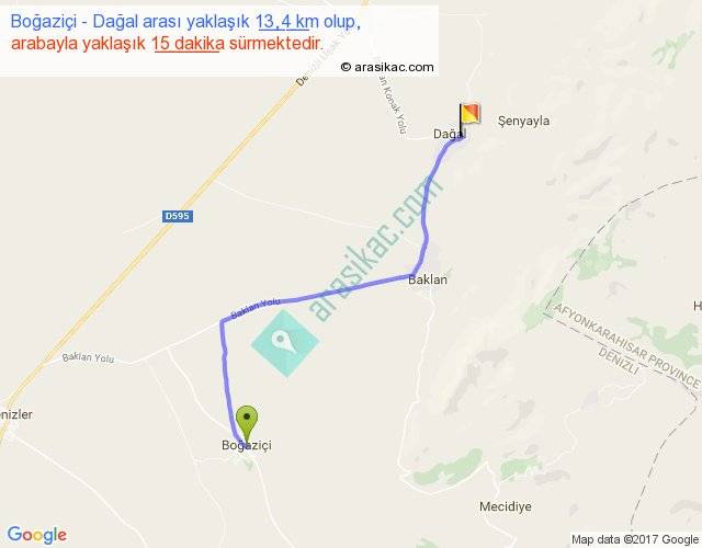Boğaziçi - Dağal arası yaklaşık olarak 90 km/h ile yukarıda belirtilen sürede olup, iki yerin kuş uçuşu uzaklığı (mesafesi) 10'dir. Yolculuk otobüsle 19 dakika sürmektedir.