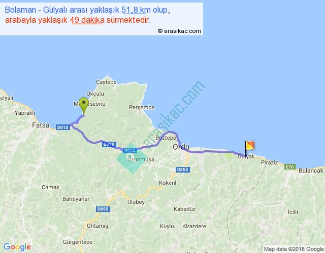 Eğer Bolaman Gülyalı arası ne kadar yakar (benzin/mazot) diyorsanız, kilometrede 3 ₺ yakan bir aracınız var ise 153, km'de 4 ₺ yakan bir aracınız var ise 204, km'de 5 ₺ yakan bir aracınız var ise 255 ile bu yolculuğu tamamlayabilirsiniz.