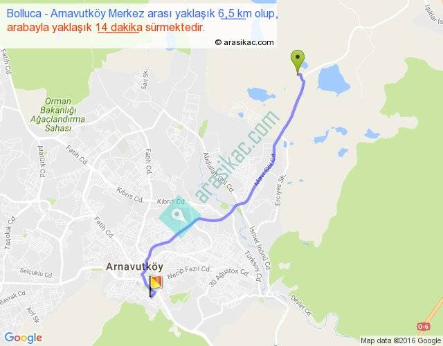 Bolluca - Arnavutköy Merkez arası yaklaşık olarak 90 km/h ile yukarıda belirtilen sürede olup, iki yerin kuş uçuşu uzaklığı (mesafesi) 5'dir. Yolculuk otobüsle 18 dakika sürmektedir.