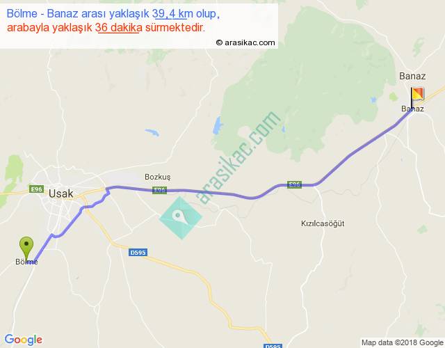 Bölme - Banaz arası yaklaşık olarak 90 km/h ile yukarıda belirtilen sürede olup, iki yerin kuş uçuşu uzaklığı (mesafesi) 35'dir. Yolculuk otobüsle 46 dakika sürmektedir.