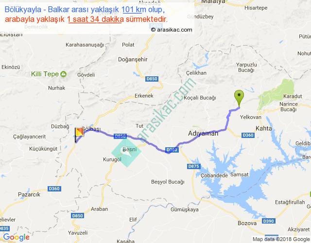Bölükyayla - Balkar arası yaklaşık olarak 90 km/h ile yukarıda belirtilen sürede olup, iki yerin kuş uçuşu uzaklığı (mesafesi) 82'dir. Yolculuk otobüsle 2 saat 2 dakika sürmektedir.